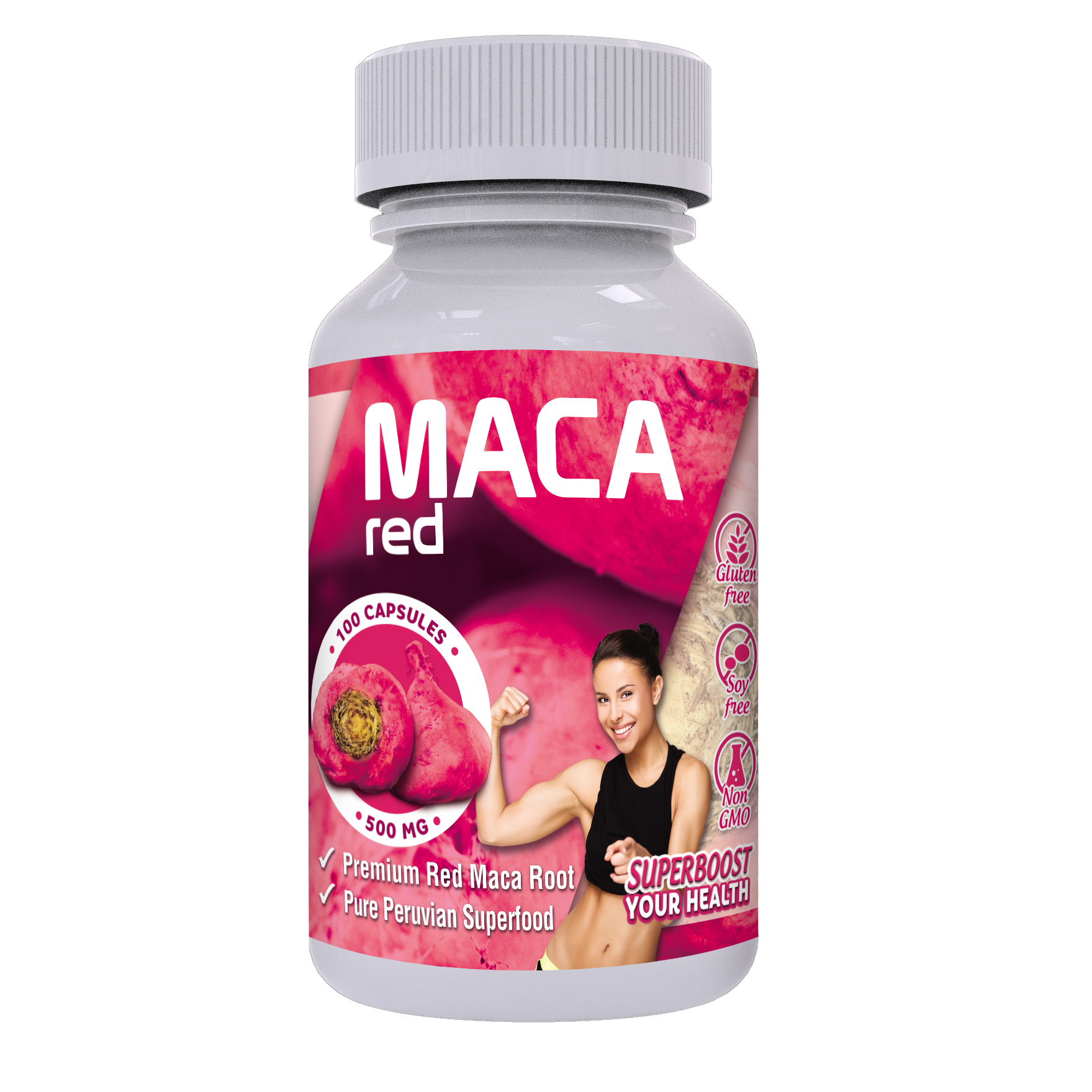 Red Maca Capsules for Women – Gelatinized – From Perú – 1000 mg. per dose