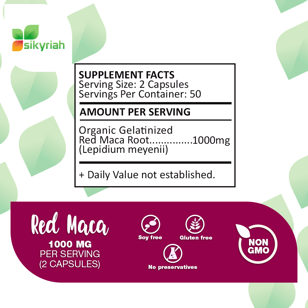 - SPECIAL FOR WOMEN! Studies show that Red Maca root is the best Maca for Female Health. With our Red Maca you will improve your Energy, Mood and Libido Enhancer, for better Sexual relationships. Our Red Maca helps your Hormone Balance, it helps to reduce the annoying symptoms of Menopause. It is considered as Natural Women Vitamins. It contains 1000 mg per serving (2 capsules)